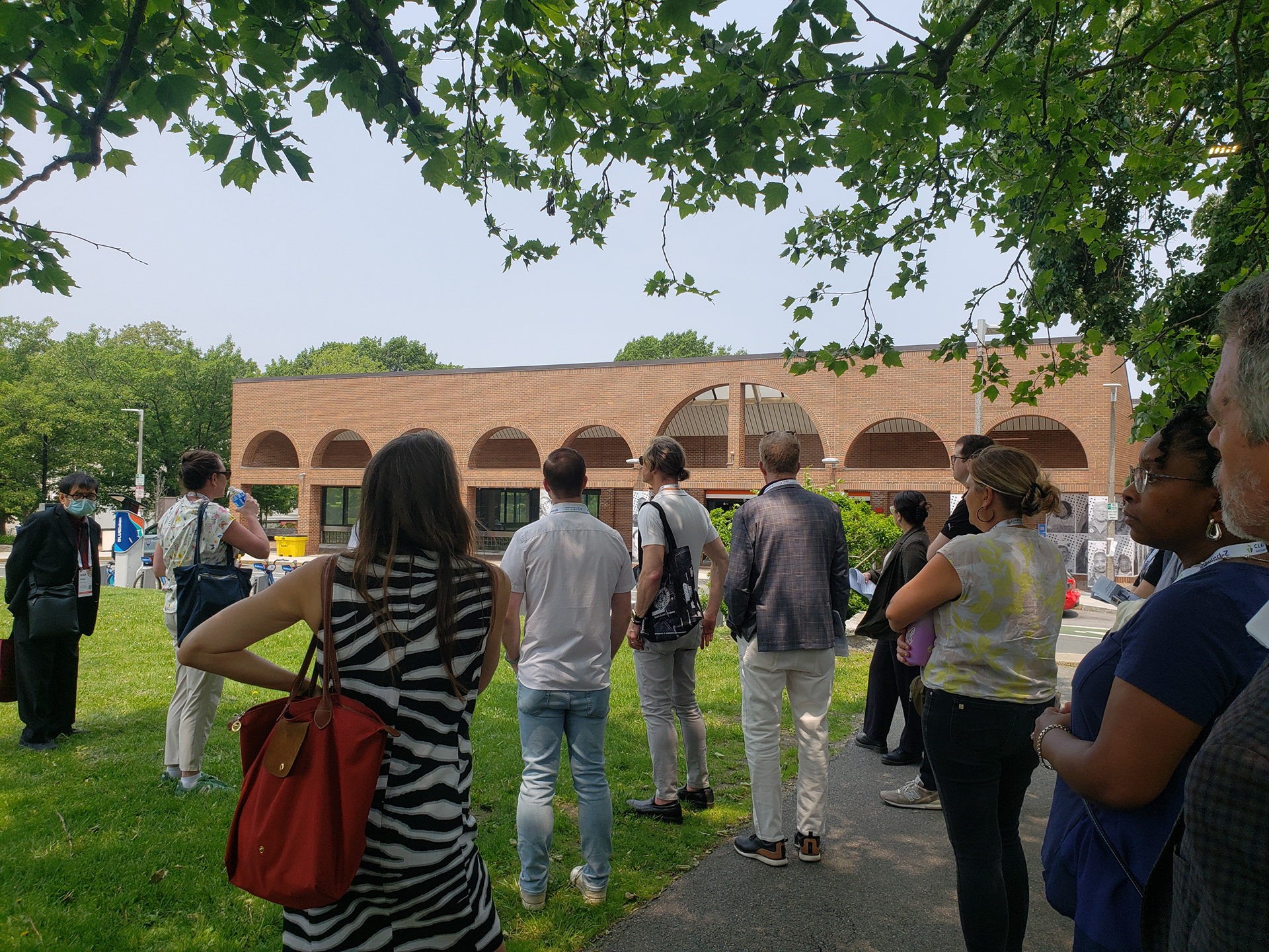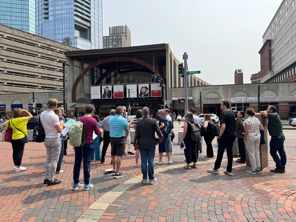 The Southwest Corridor Research Collaborative led a sold-out walking tour of the Southwest Corridor for the AIA Conference on Architecture. Attendees from across the country learned about the history of community activism and the design decisions that guided the project. Major stops on the tour included Back Bay Station, Ruggles Station, and Stony Brook Station, with key parks, public art pieces, ventilation structures, and civic buildings pointed out along the way. The tour dove into the complex legacy of the project and highlighted design details along its length.